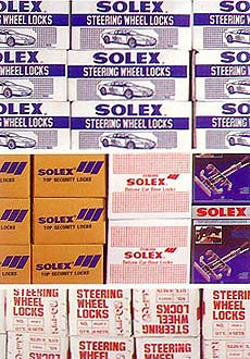 Meanwhile the number of cars grew beyond all expectation. In urban Thailand they became a necessity, while their price elevated them to status symbols. Security systems for cars became more and more sophisticated. From Solex there is now a complete, range: Car security lock, motorcycle lock, padlocks, furniture locks, computer locks, door knobs, handle locks set, fire resisting safe, solar energy water heater and water filter. As a useful sideline, Solex also produces with high quality material and meticulous craftsmanship a selection of tools for professional and home use: hammers, saws, screwdrivers, measuring tapes and garden shears, for example.
